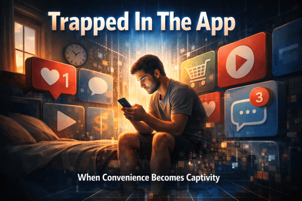 You opened the app for a minute. An hour disappeared. “Trapped In The App” explores how modern apps quietly turn convenience into control—shaping our attention, habits, and choices without force or permission. This isn’t about deleting technology, but about noticing when a helpful tool slowly becomes the place where life happens.