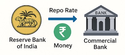 When banks need money, they go to RBI and borrow it. The interest they pay on this borrowing is called the Repo Rate.