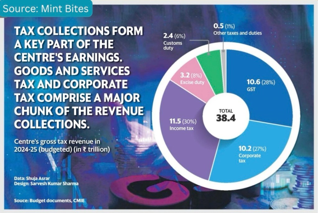 Who Pays the Most? India’s 2024–25 Tax Revenue Sources
